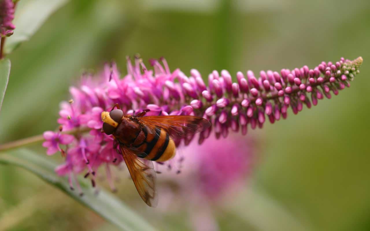 Eine Volucella zonaria (Hornissenschwebfliege) besucht ein Exemplar der Veronica (Hebe) ,Great Orme‘. Foto: © Marc Carlton.