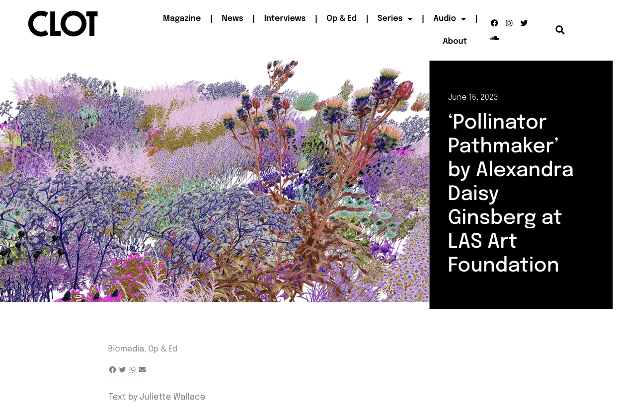 "Artist Alexandra Daisy Ginsberg has created Pollinator Pathmaker, which uses an algorithm to optimise the selection and placement of plants for polliantors - what she calls an 'artwork for pollinators, not about them.“