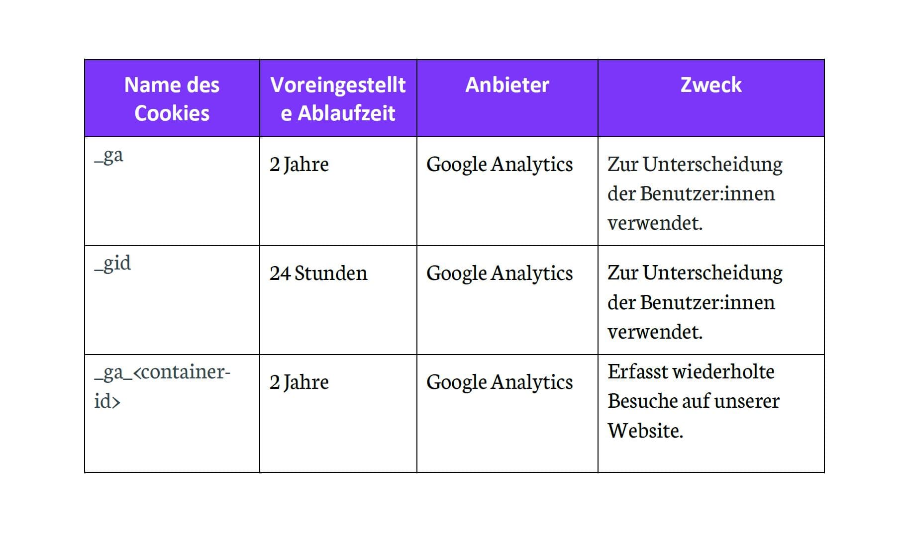 Unsere Website verwendet auch Google Analytics, um unsere Website zu bewerten und zu verbessern, Ihre Erfahrungen zu individualisieren und allen unseren Besucher:innen eine möglichst gute und zugängliche Dienstleistung zu bieten.