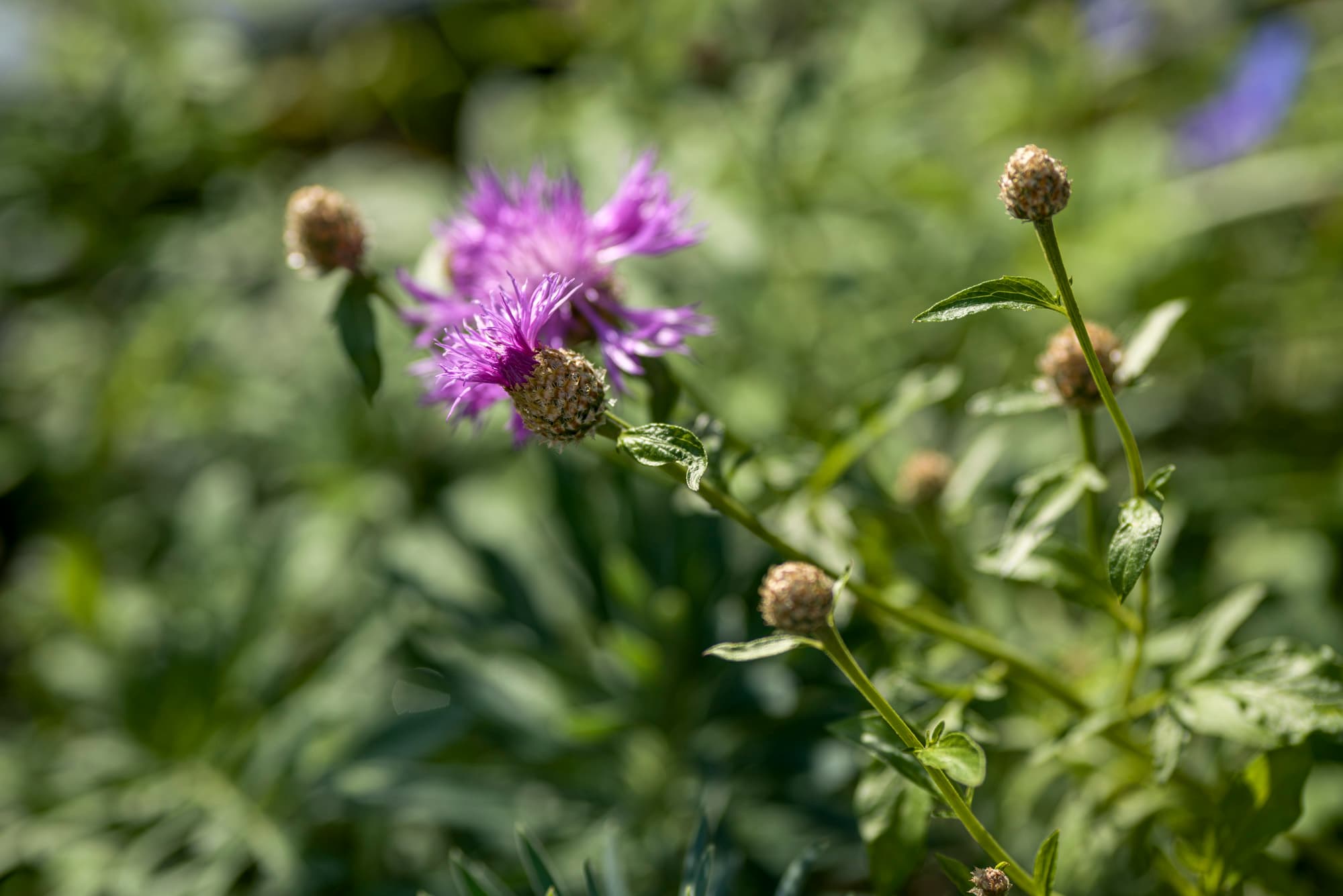 Eine Centaurea nigra im Pollinator Pathmaker auf einer Dachterrasse im 12. Stock im Sommer 2024. Foto: Gareth Gardner.