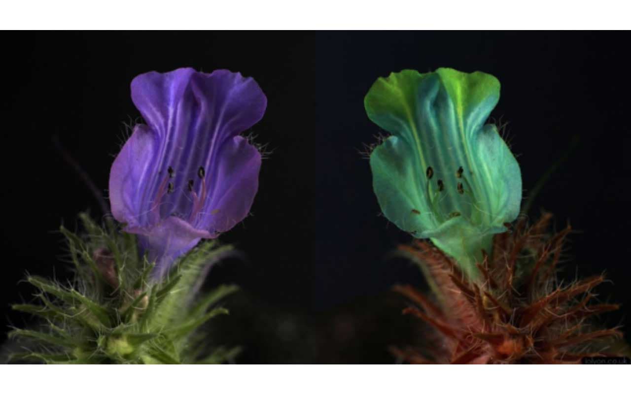 While bees’ compound eyes give them a grainy view of the world, their higher ‘flicker’ threshold means they can see individual flowers as they fly past, which to us would be a blur. They can also see polarised light, which helps them to navigate. Gardens look very different to pollinators.